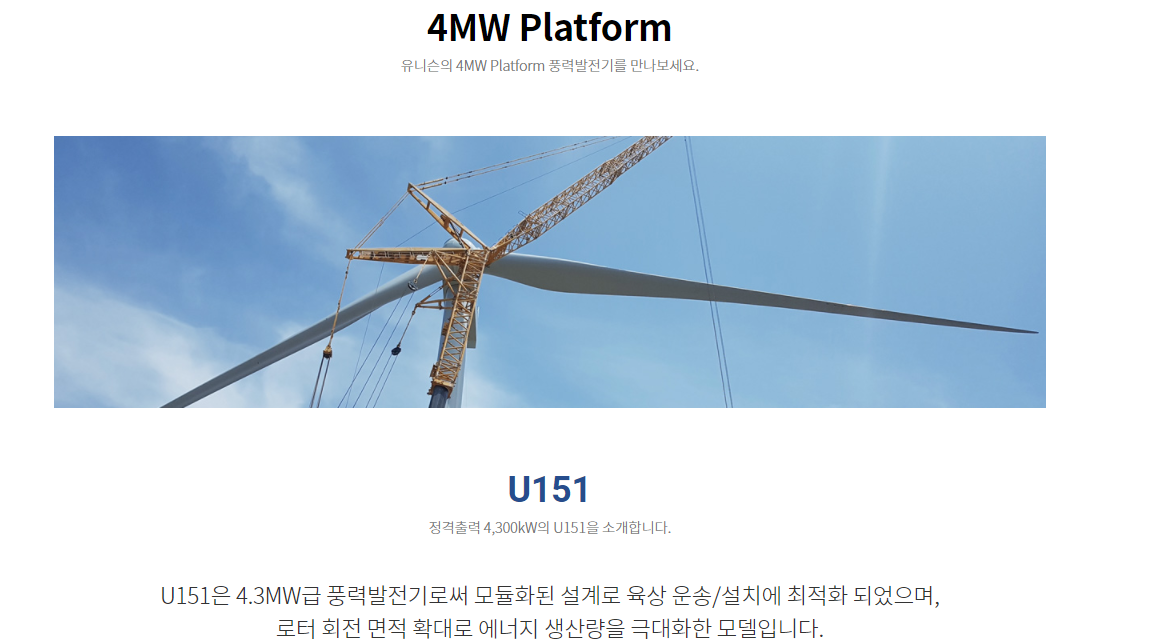 풍력발전은 신재생에너지원 중 발전단가 및 효율성 측면에서 가장 경쟁력 있는 에너지원으로 유니슨은 대규모 풍력발전단지 조성 및 운영, 유지보수사업도 영위하고 있습니다.