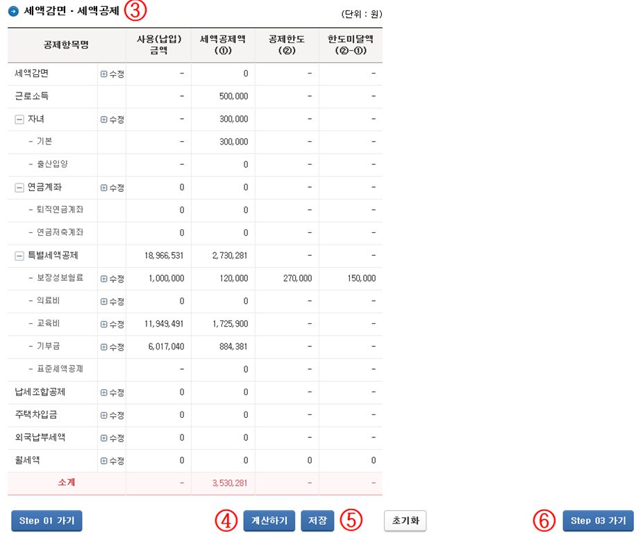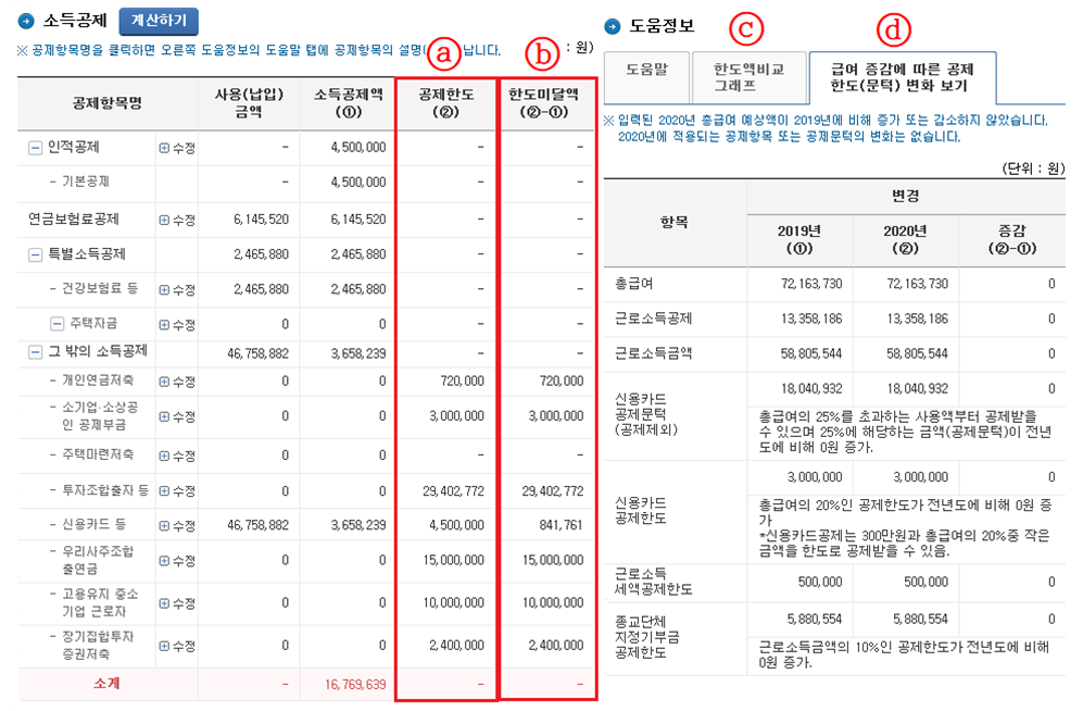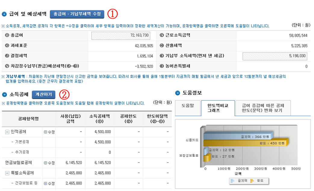 따라서 정확히 계산하면 각 공제항목을 올해 사용금액으로 수정을 하면 더욱 정확하게 확인할 수 있습니다.