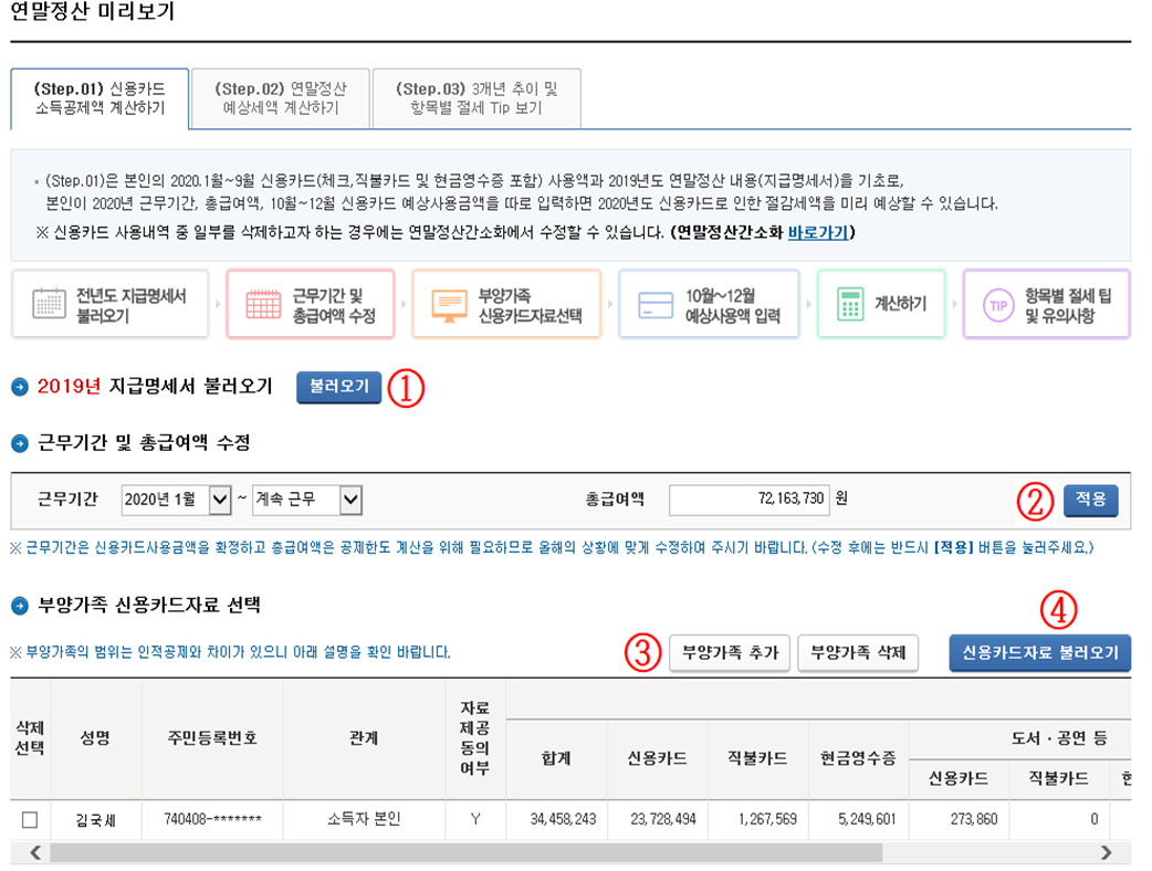 ⓒ국세청 [2단계] 연말정산 예상세액 계산하기