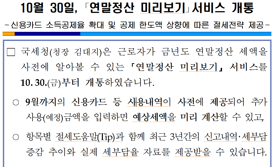 ⓒ국세청 ▼연말정산 미리보기 서비스 개통