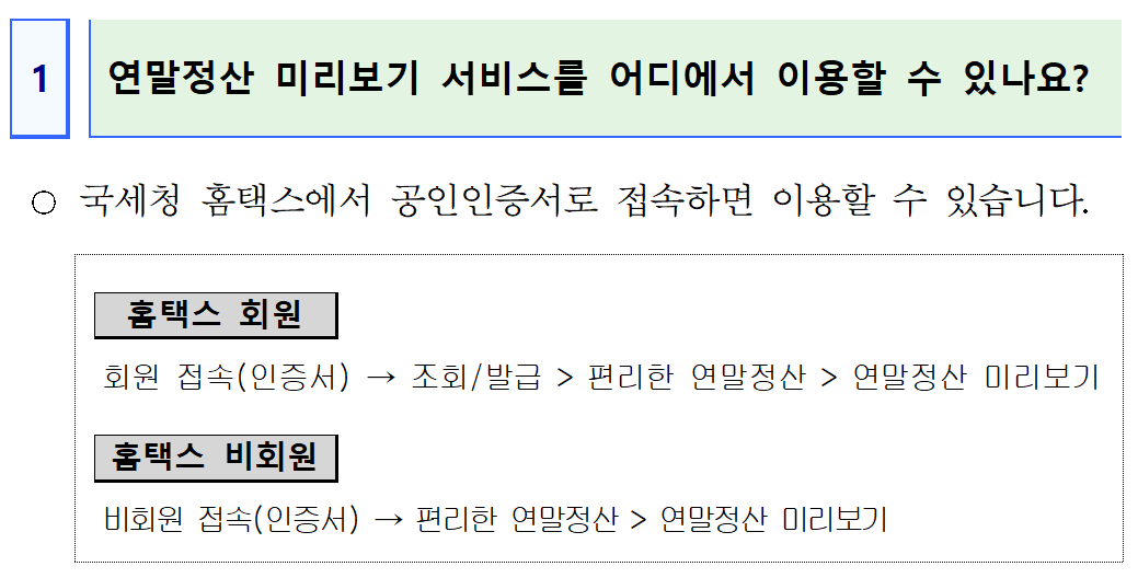 ⓒ국세청 ▼연말정산 미리보기 서비스이용하기