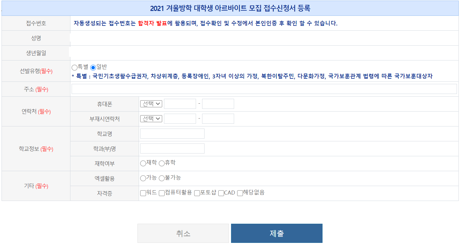 다만 신청 시 선발유형(특별, 일반) 자격은 본인 스스로 판단하여 선택해야 하며
