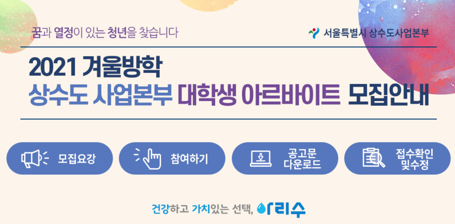 서울시 상수도사업본부 대학생 아르바이트 모집!