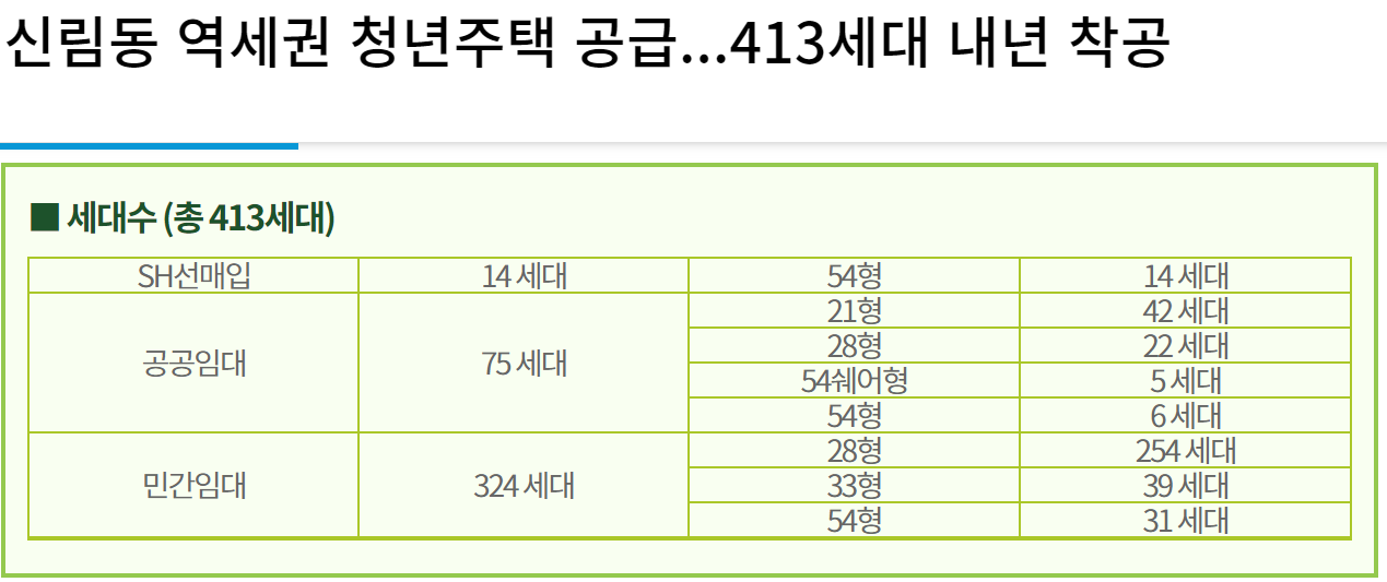 ⓒ서울시 ▼신림동 역세권 청년주택 총413세대