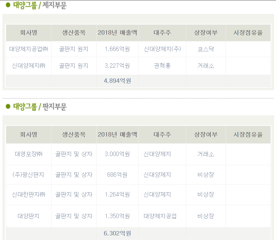 본사는 골판지 및 골판지 상자를 제조, 판매하고 있으며, 7개의 계열회사가 있습니다.