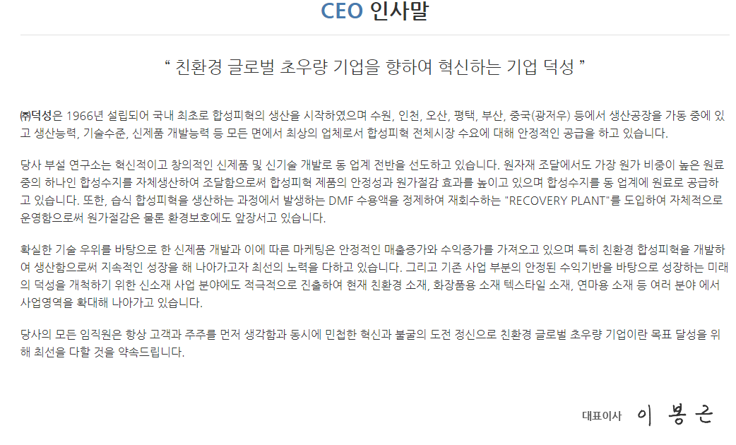 덕성의 이봉근 대표이사 및 김원일 사외이사가 서울대 법대 동문이라 주목받고 있습니다.