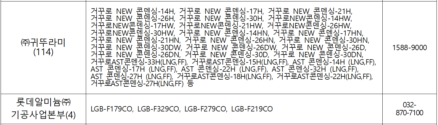ⓒ서울시 ▼환경부 인증 친환경 보일러 목록