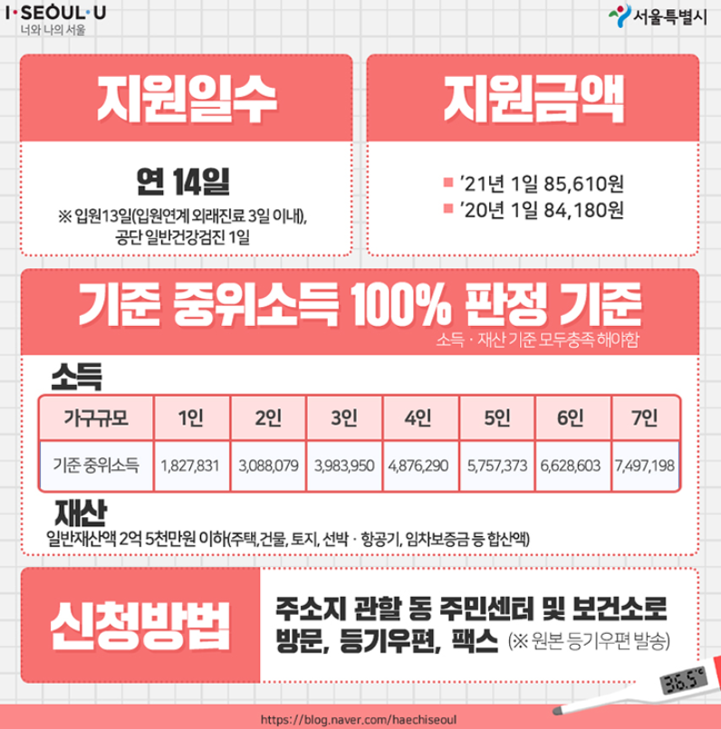ⓒ서울시 지원금액은 1일 최대 85,610원으로 최대 13일의 경우 1,112,930원까지 지급받을 수 있습니다.