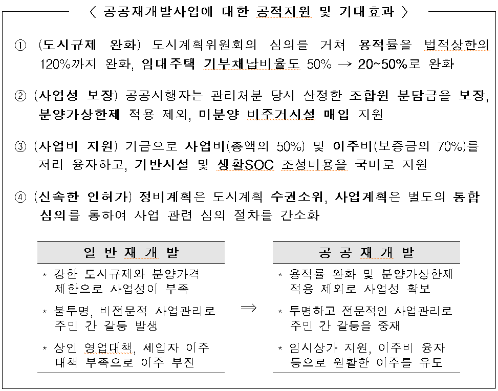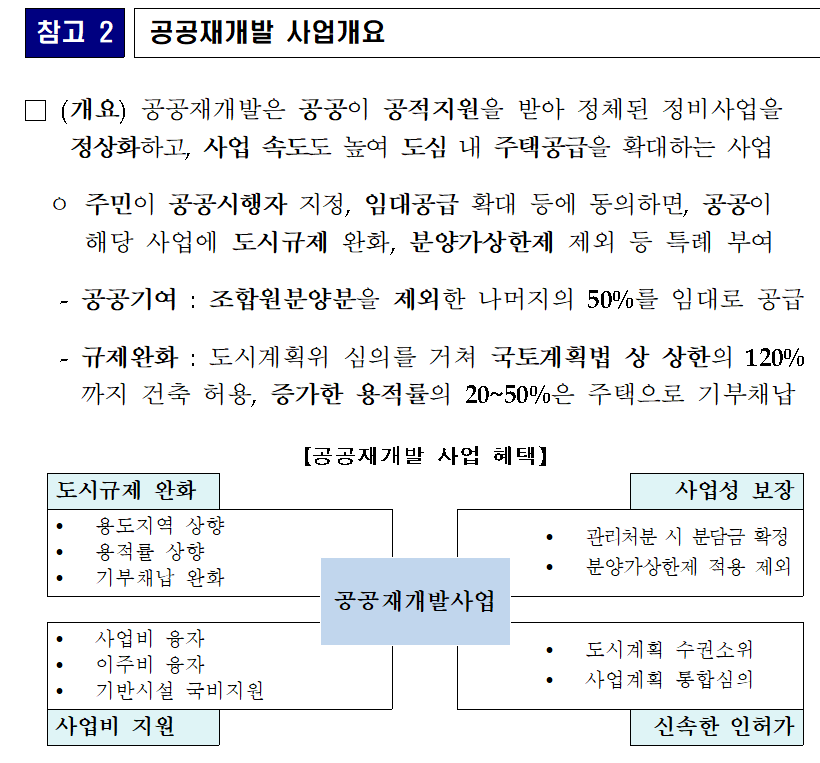 공공재개발은 LH·SH 같은 공공시행자가 사업성 부족, 주민 간 갈등 등으로 장기 정체된 재개발사업에 참여해 주거환경을 개선하고 도심 내 주택공급을 촉진하는 사업을 말합니다.