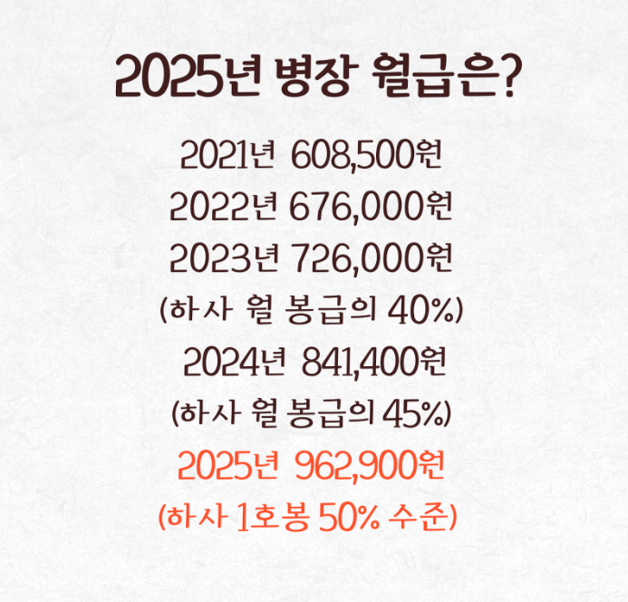 2025년에는 병장의 월급은 100만원에 육박하는 96만 2900원에 도달하게 됩니다!