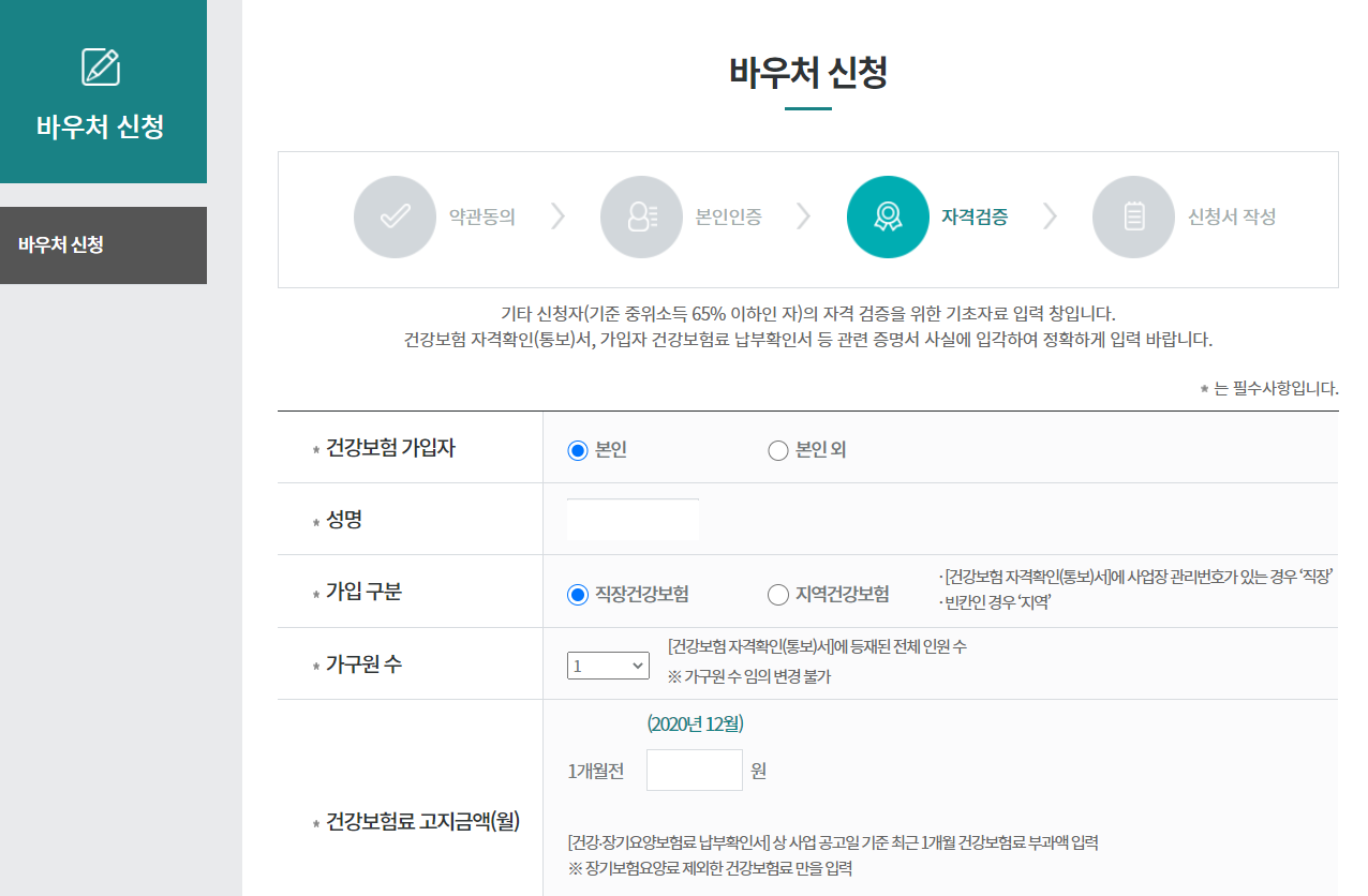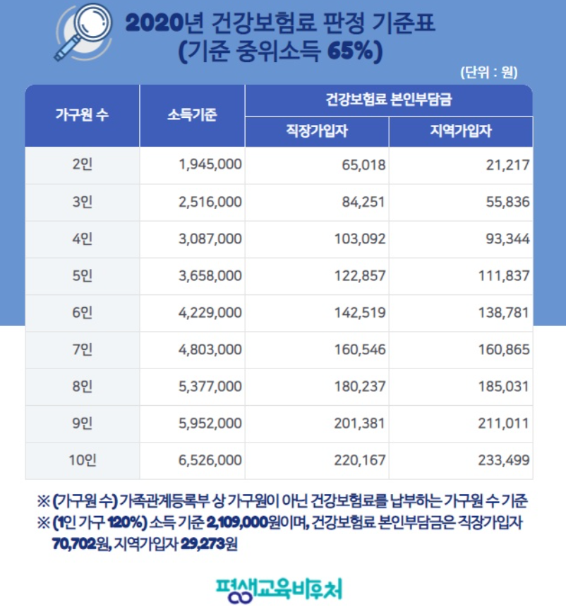 ⓒ평생교육바우처 2021년 평생교육 바우처 신청의 경우는 공고 기준으로 2020년 12월 건강보험료 납부금액을 기준으로 하며