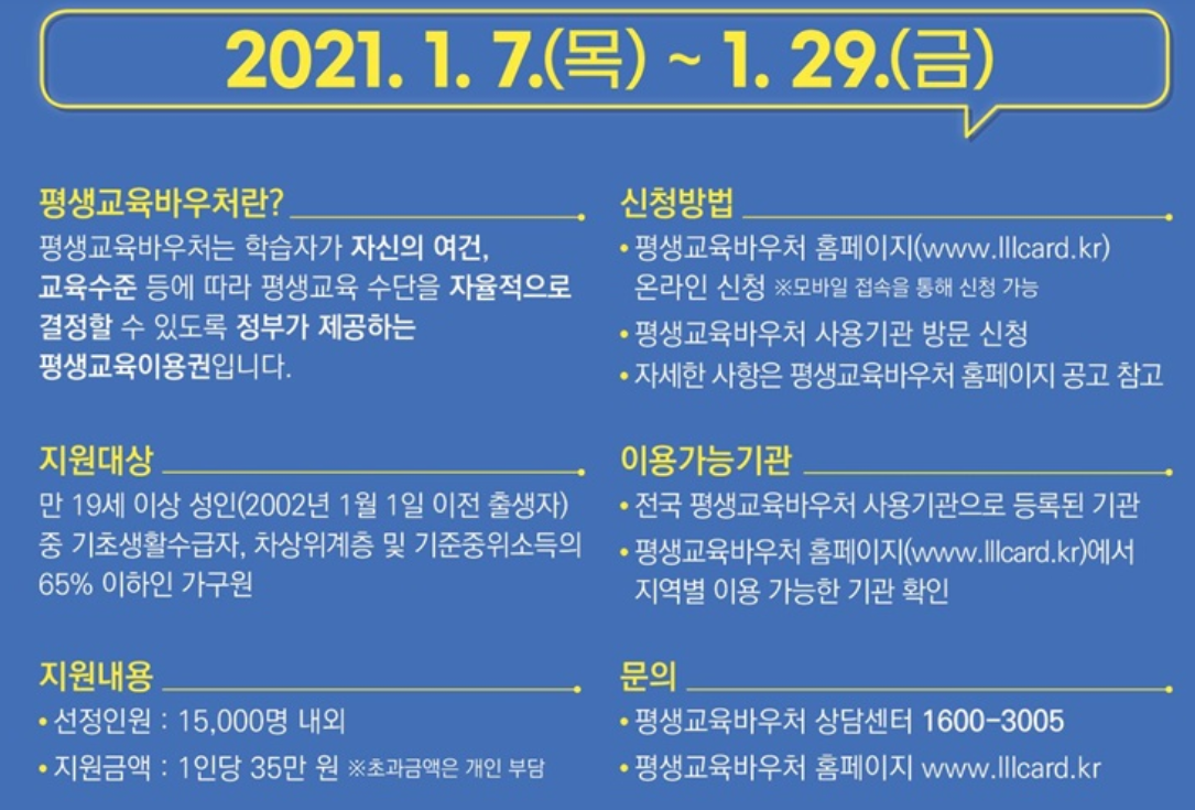 평생교육 바우처 신청 기간 및 서류 확인생활정보 2021. 1. 27. 14:10반응형