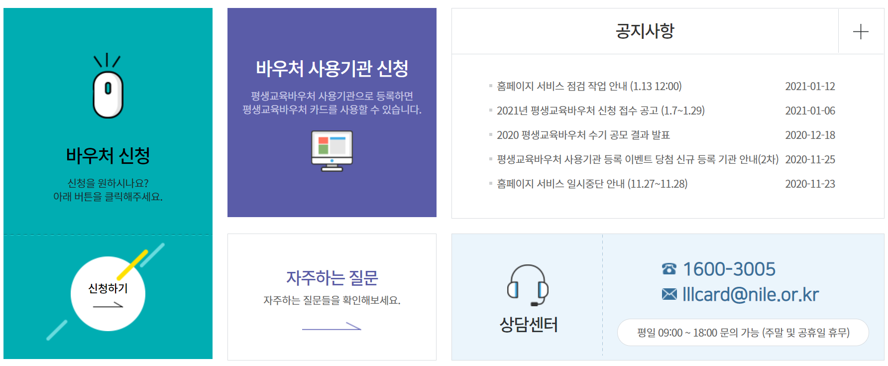 평생교육 바우처 신청은 모바일이나 컴퓨터로 홈페이지(바로가기)에 접속하여 신청이 가능합니다.
