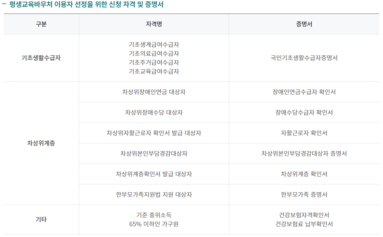 평생교육 바우처를 신청하기 위해서는 나이와 일정 소득 조건을 충족해야 합니다.
