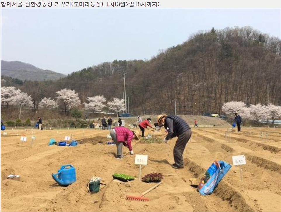 안녕하세요. 서울시는 2월 1일부터 ‘함께 서울 친환경농장’ 참여자를 모집하고 있습니다.