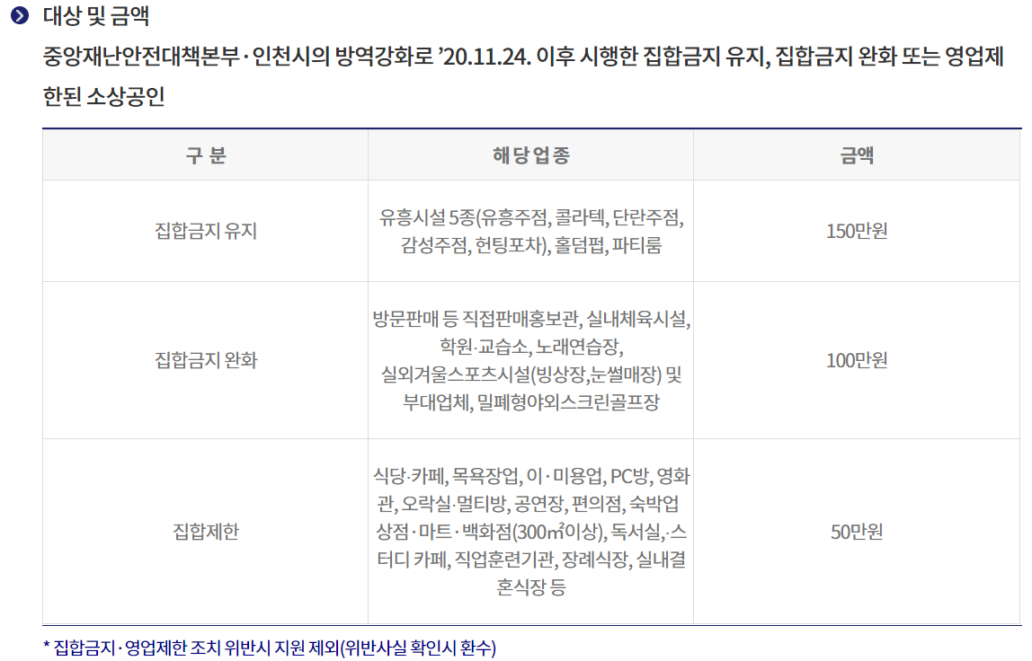 ⓒ인천광역시 (1) 집합 금지 유지업종은 150만 원