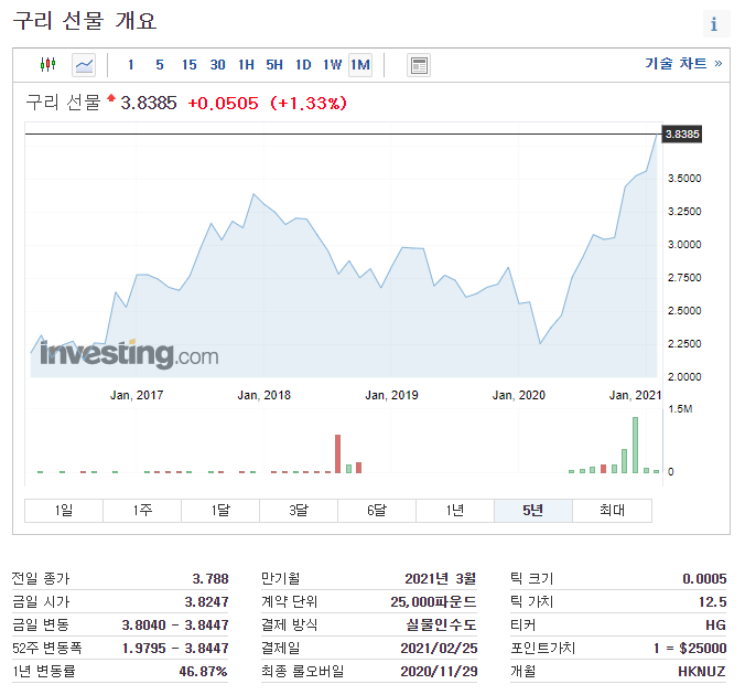 인베스팅닷컴- 구리가격 ▼구리 관련주 대장주 총정리!