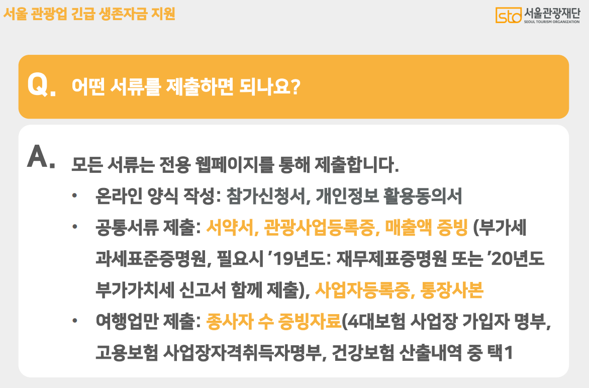 ⓒ서울 관광재단 ▶신청 시 제출해야 하는 서류 목록은 다음과 같습니다.