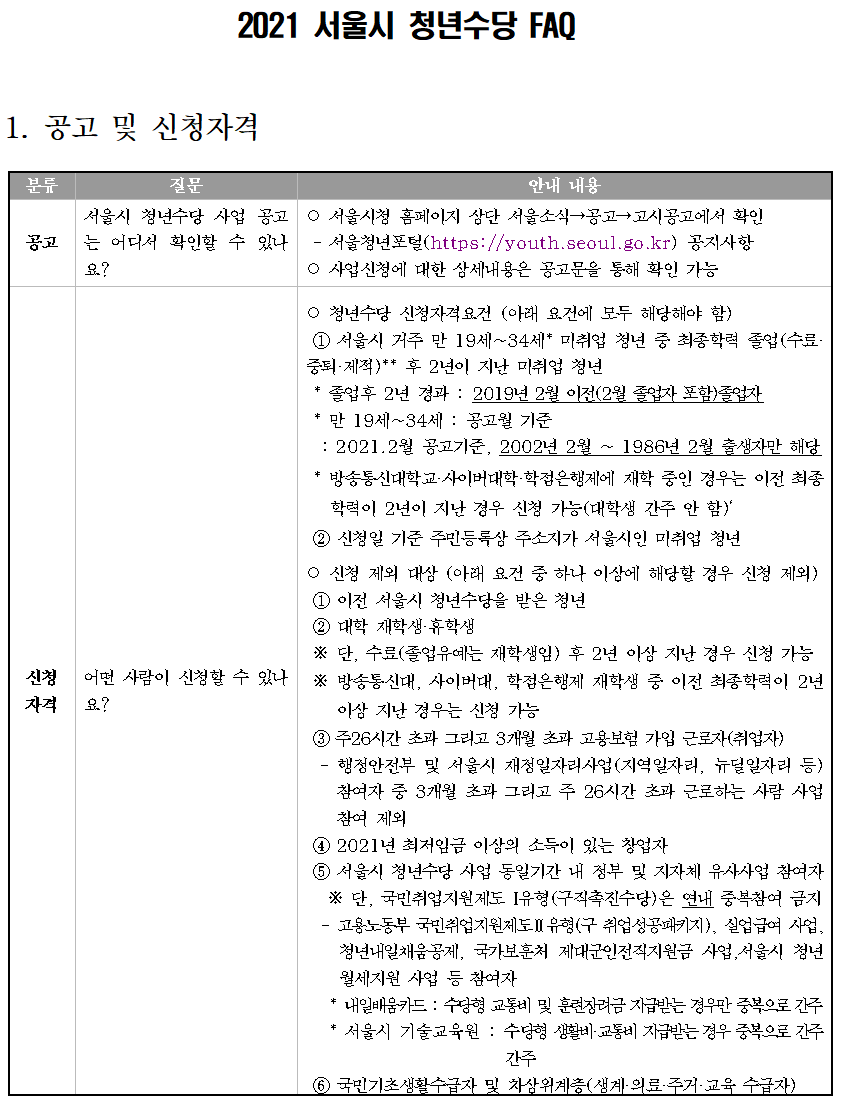 ⓒ서울시 ▼2021년 서울시 청년수당 신청기간 및 방법