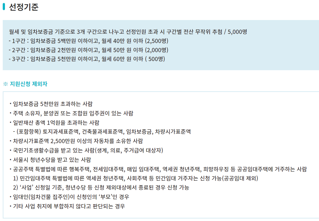 단, 서울형주택바우처, 공공전세대출의 수혜를 받고 있는 청년들은 올해부터 지원할 수 있습니다.