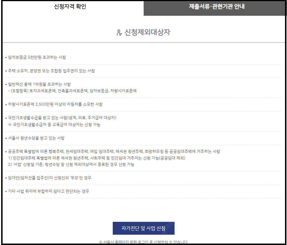 ⓒ서울시 신청은 서울 주거 포털 홈페이지에서 자가진단으로 신청자격을 스스로 판단한 뒤 증빙서류를 첨부하여 신청하면 됩니다.