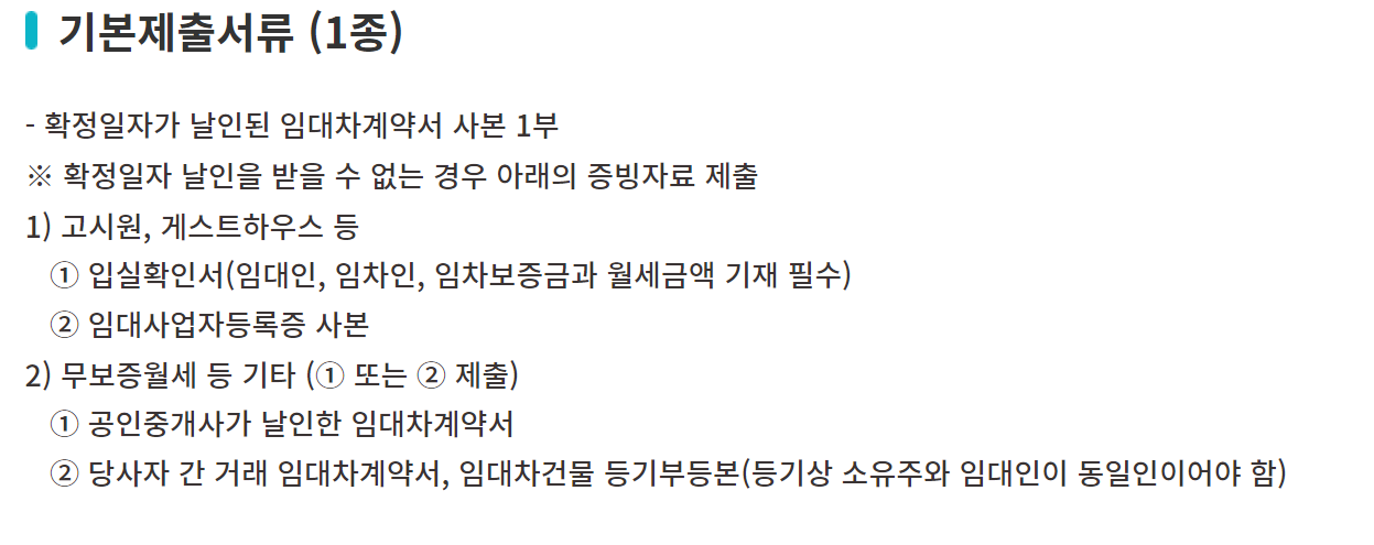 ※ 확정일자 날인을 받을 수 없는 경우 아래의 증빙자료 제출
