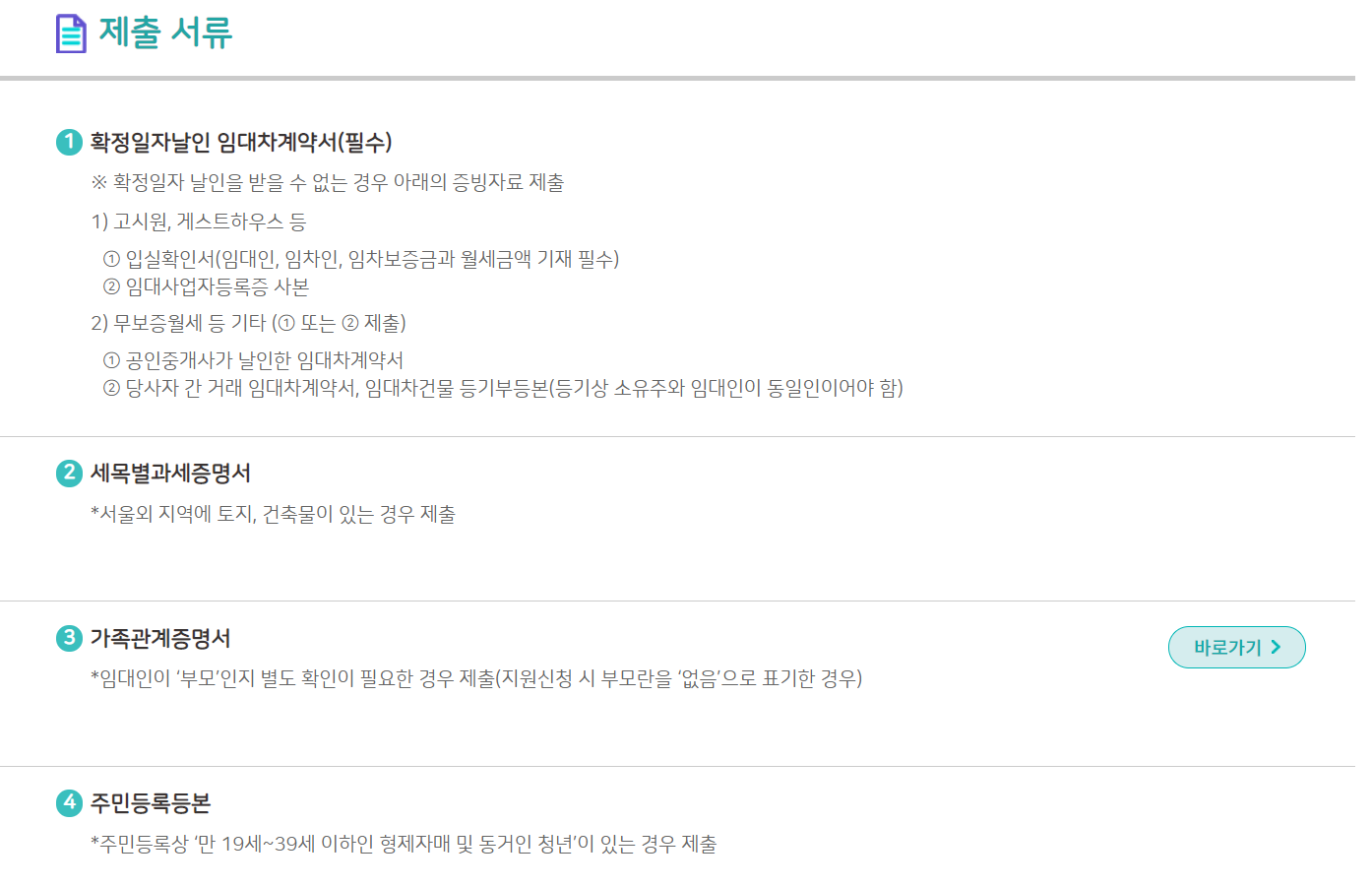 등본상 만 19세~39세 이하의 형제자매 및 동거인 청년이 있는 경우 등본까지 제출해야 합니다.