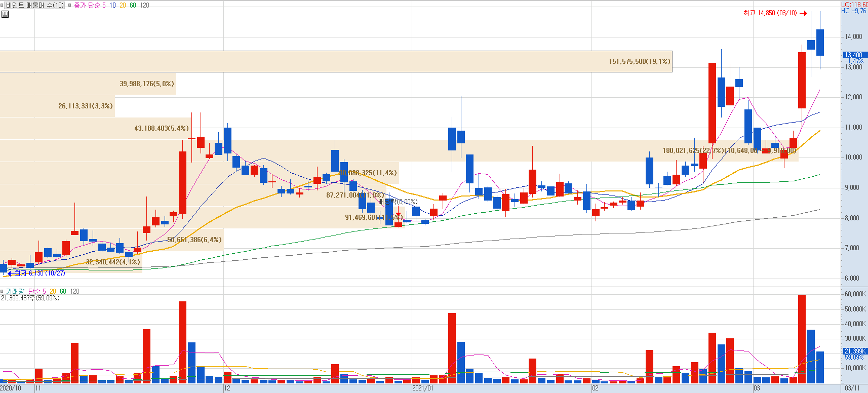 비덴트의 주식 316만 14010주를 163억 원에 추가 취득하며 지분을 늘렸으며, 추후 보유하던 550만 주가량 매각하며 시총의 4분의 1 수준인 약 244억 원가량 차익이 났습니다.