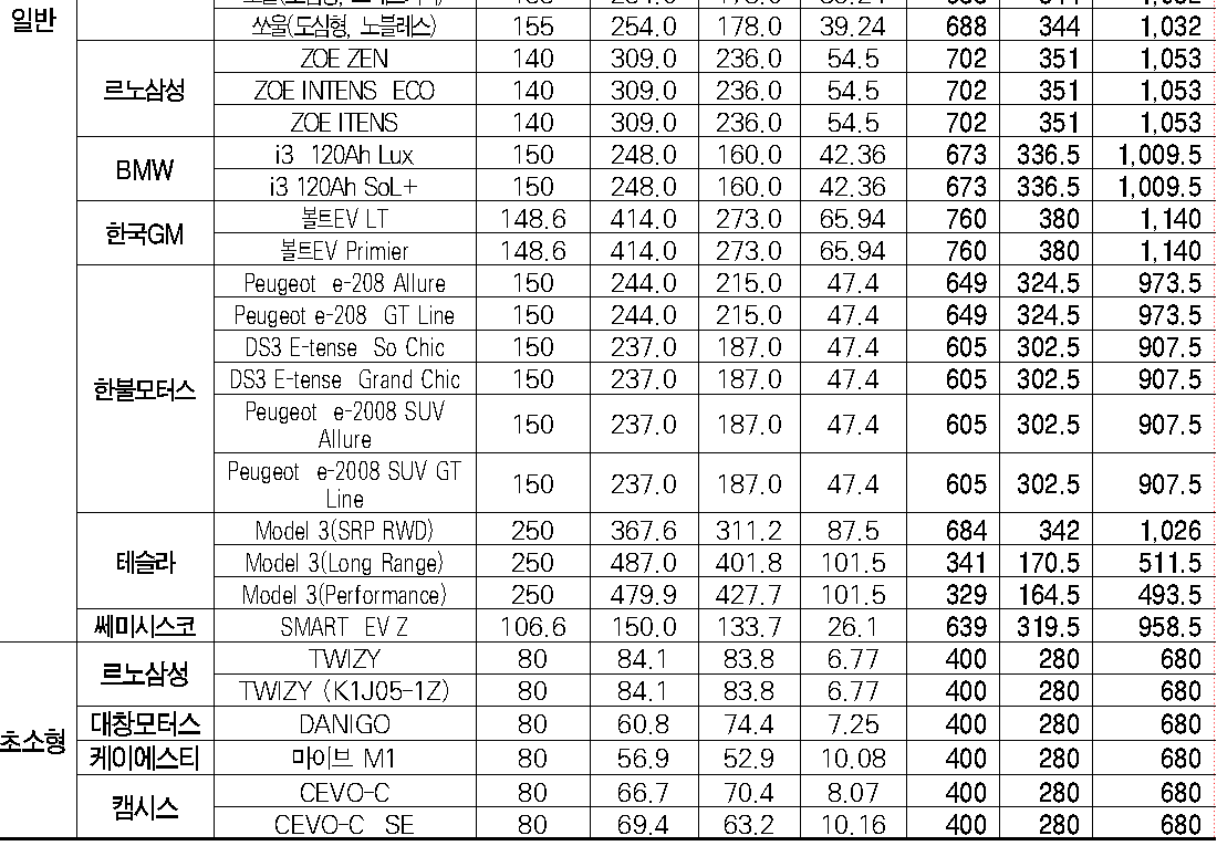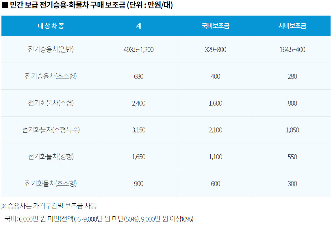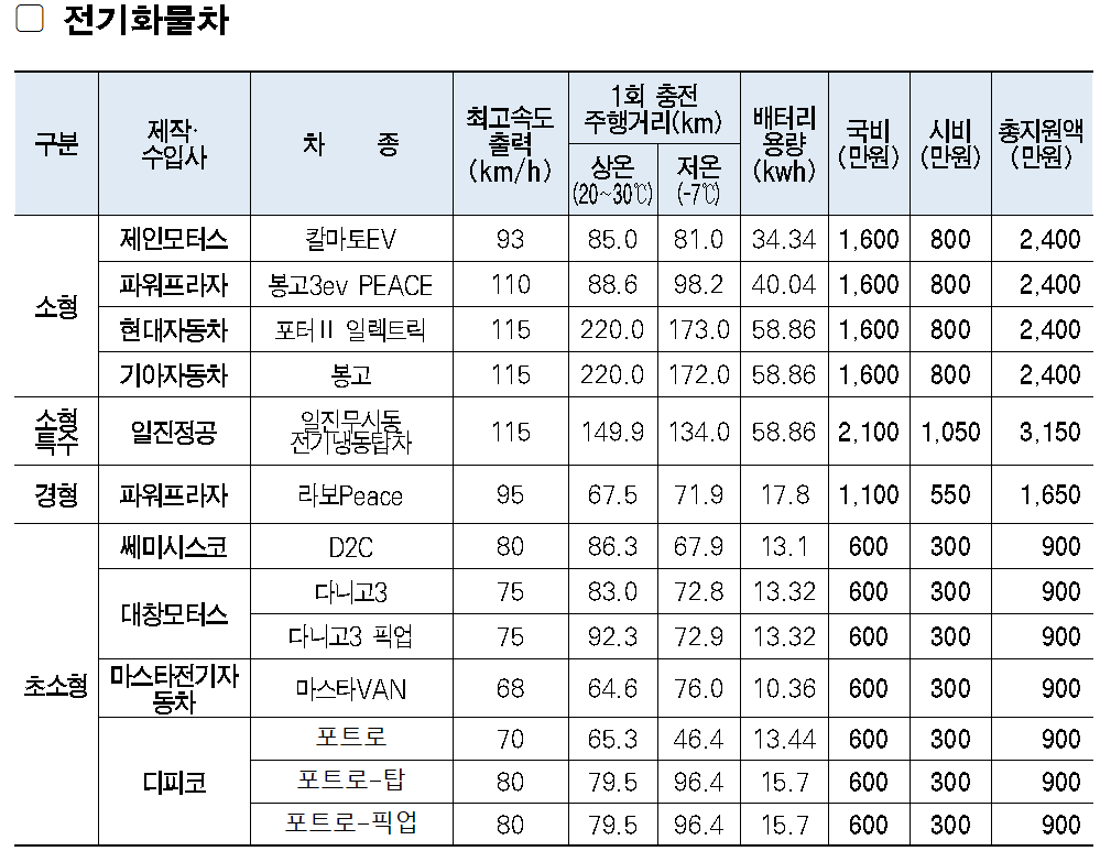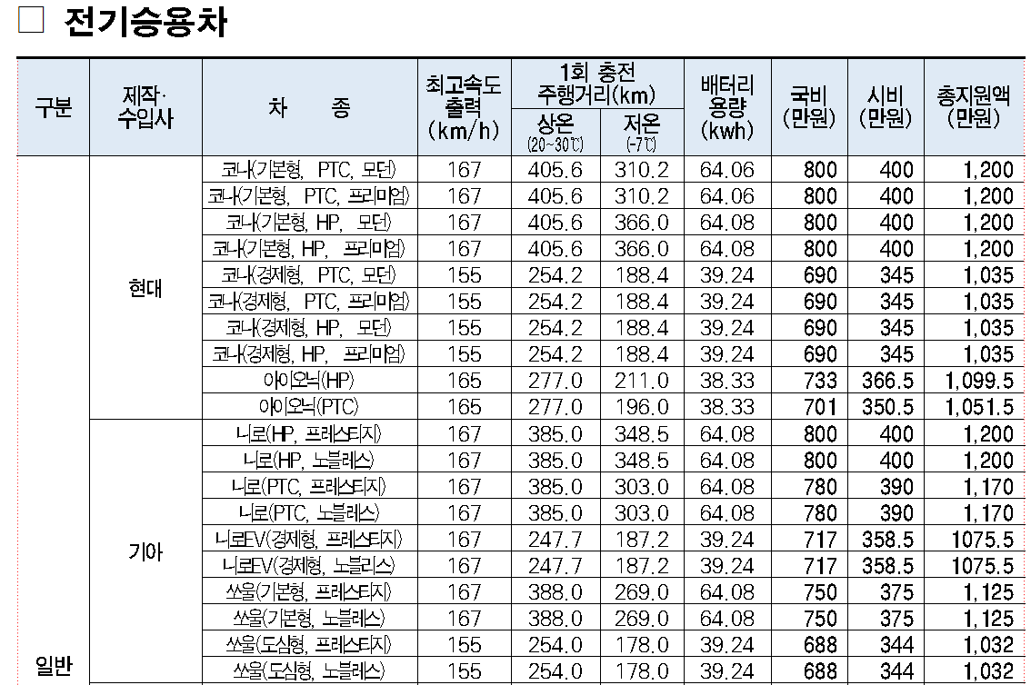 ⓒ서울시 ▼서울시 전기차 보조금 지원 대상 차종 및 금액
