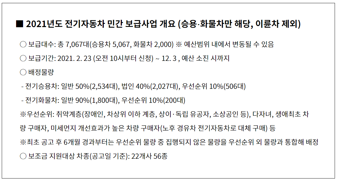 우선, 민간 대상 전기승용차와 화물차 보조금 신청접수가 지난 2월 23일부터 시작됐습니다.