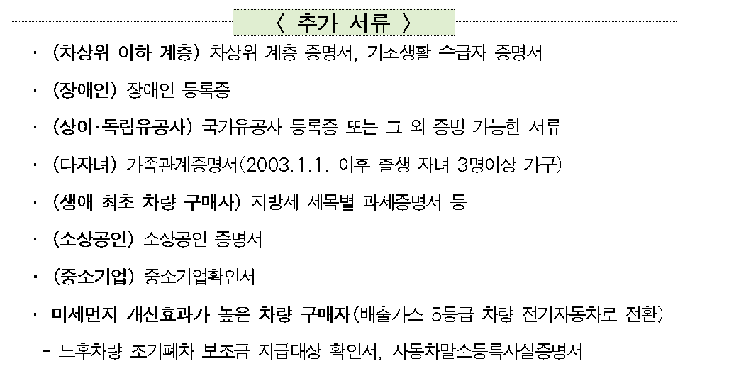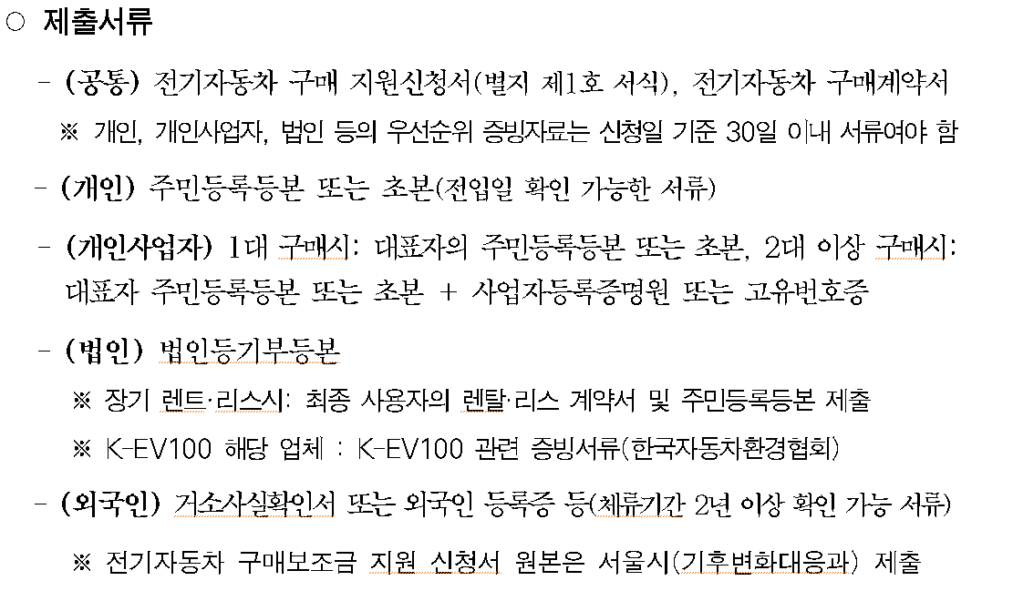 ⓒ서울시 ▷전기차 보조금 신청 시 제출서류