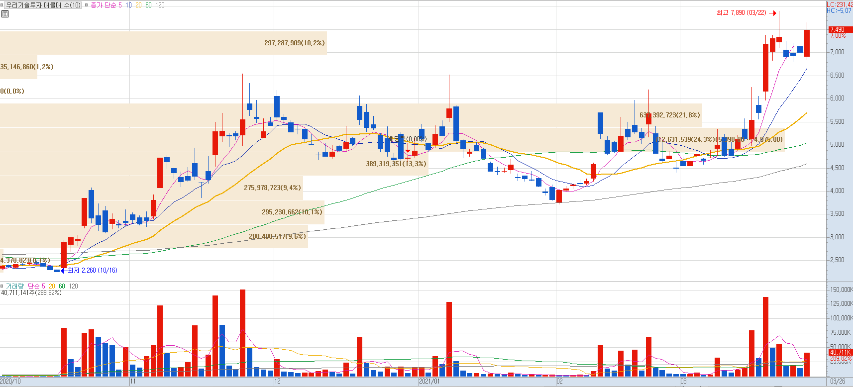 우리기술투자는 2015년 2월 5억 원에 두나무의 지분 4%를 취득한 이후 꾸준히 매입하여 현재까지 총 56억원에 8.03% 지분을 취득했습니다.