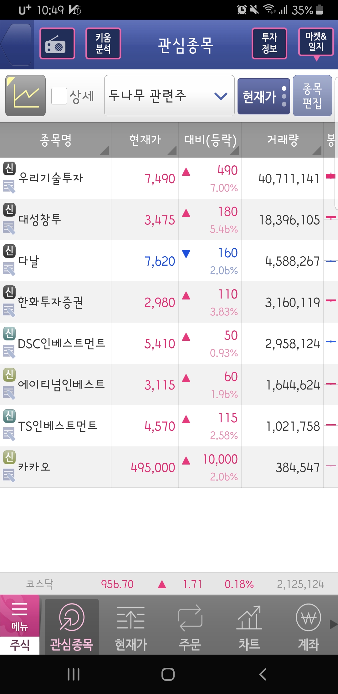 이에 두나무의 지분을 가지고 있는 주요 상장사로 지분가치가 부각되고 있습니다.