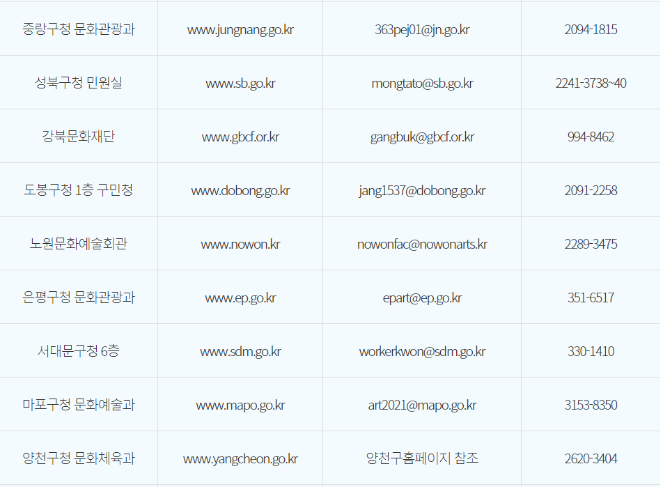 ① 온라인 접수 : 주민등록상 자치구 담당자 이메일 등