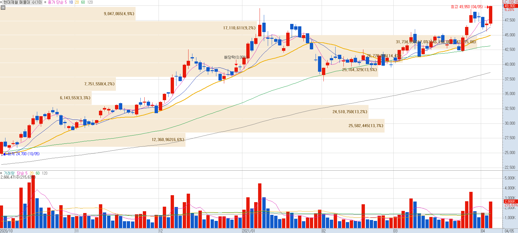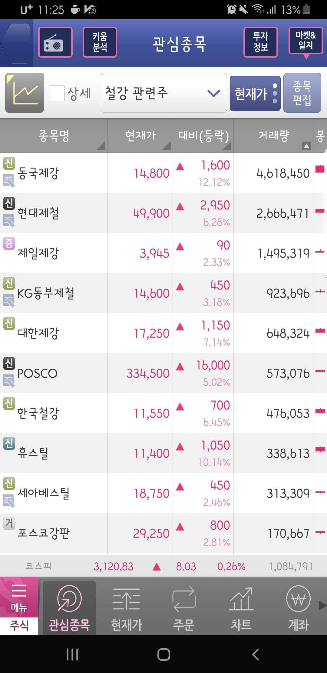 안녕하세요. 철강주들이 경기회복에 따른 수익구조 개선 기대감으로 연일 강세를 보이고 있습니다.