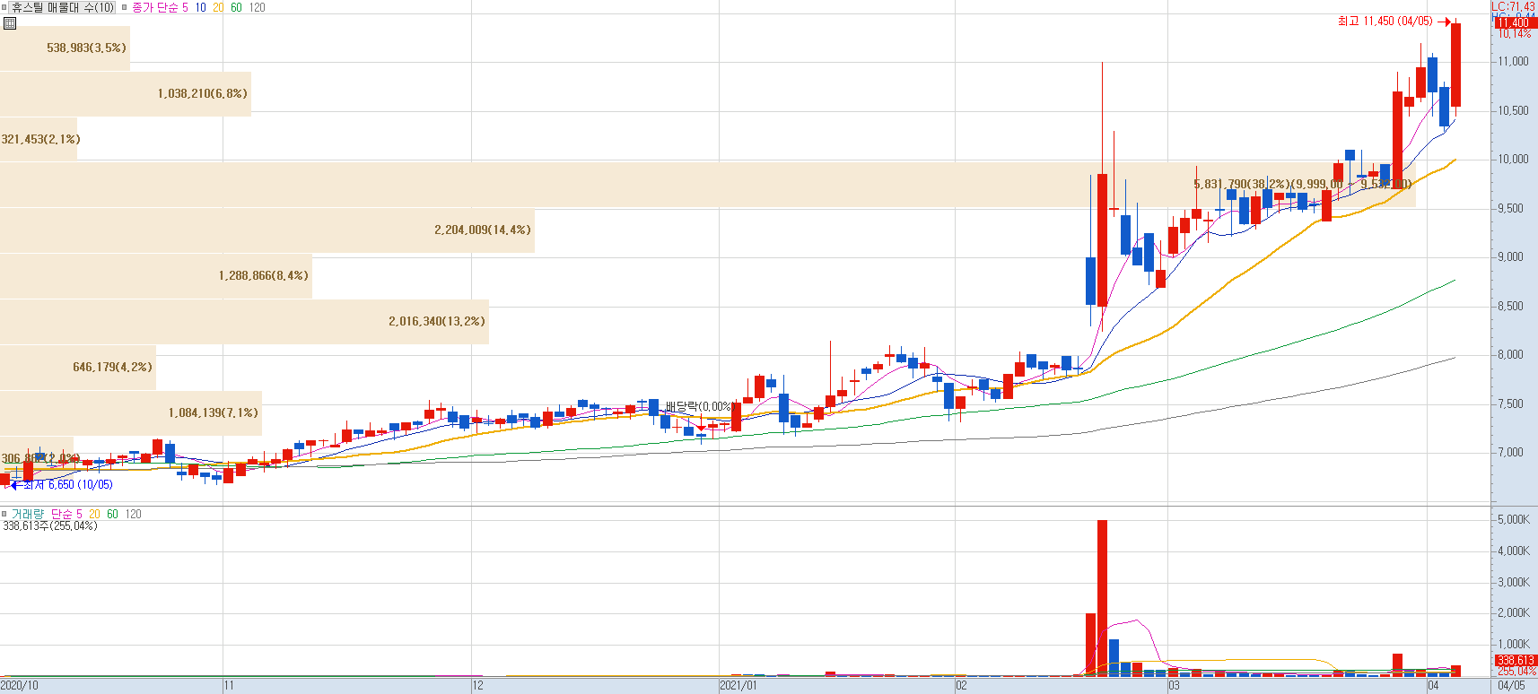 2020년 12월 두 차례에 걸쳐 유통업체에 판매하는 열연강판 가격을 t당 7만 원 올린 뒤 올해 1월 8만 원, 2월 10만 원, 3월 5만 원을 인상하였고, 이달 들어서도 5만 원을 추가로 올렸습니다.