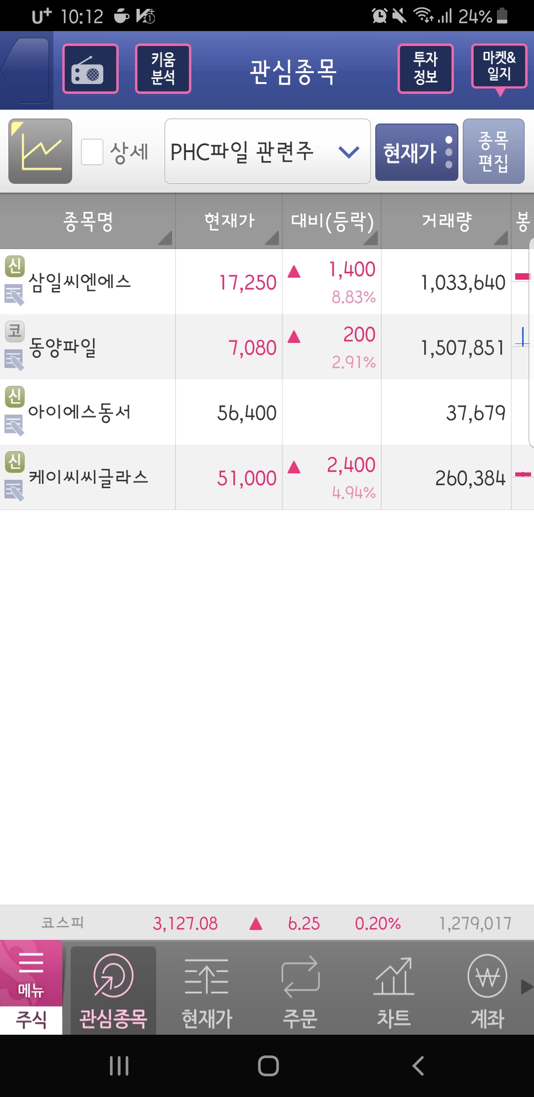 PHC파일 관련주 가격동향