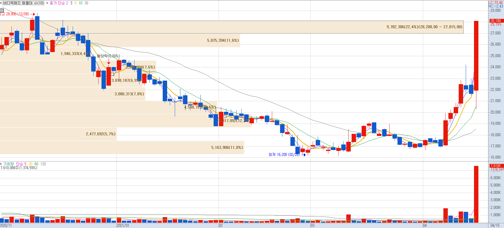 최근에는 65억원 규모 R&D센터 신축을 공시하였으며 바디텍메드는 타액을 이용해 코로나 19 감염 여부를 확인할 수 있는 항원 진단키트를 개발 완료했습니다.