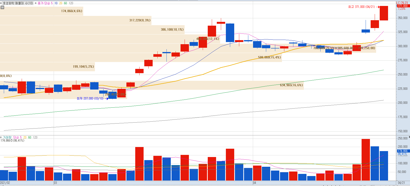 금호석유화학의 올해 1분기 매출액은 1조 6300억 원으로 전년 동기 대비 33% 늘며 영업이익 전망치가 5000억 원을 넘었을 것으로 추정하고 있습니다. 이는 분기 기준 사상 최대 규모로