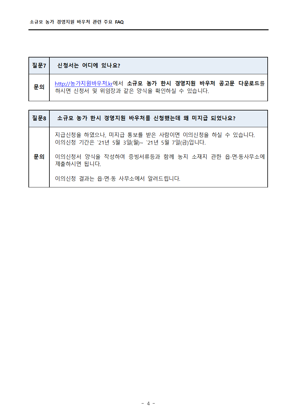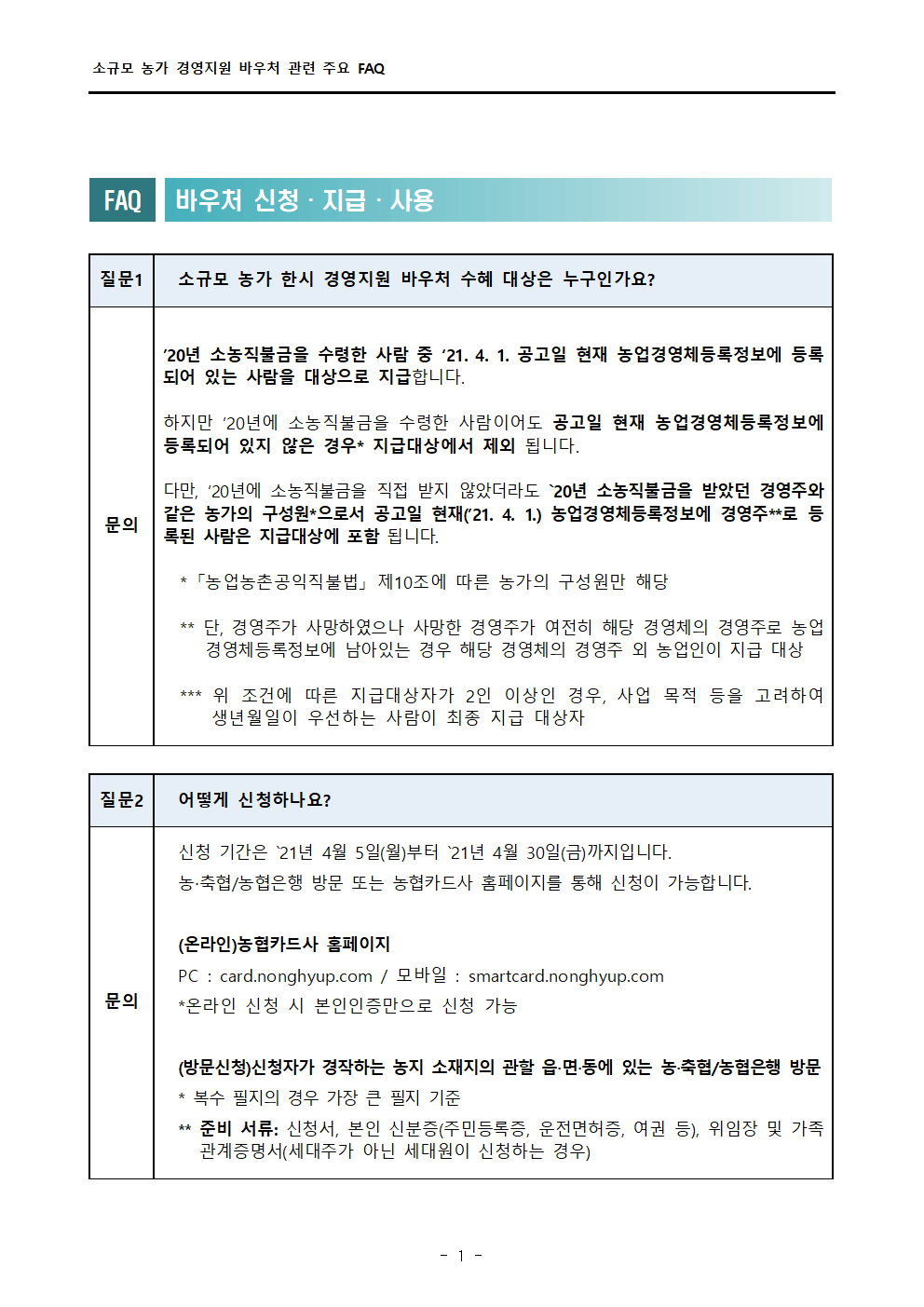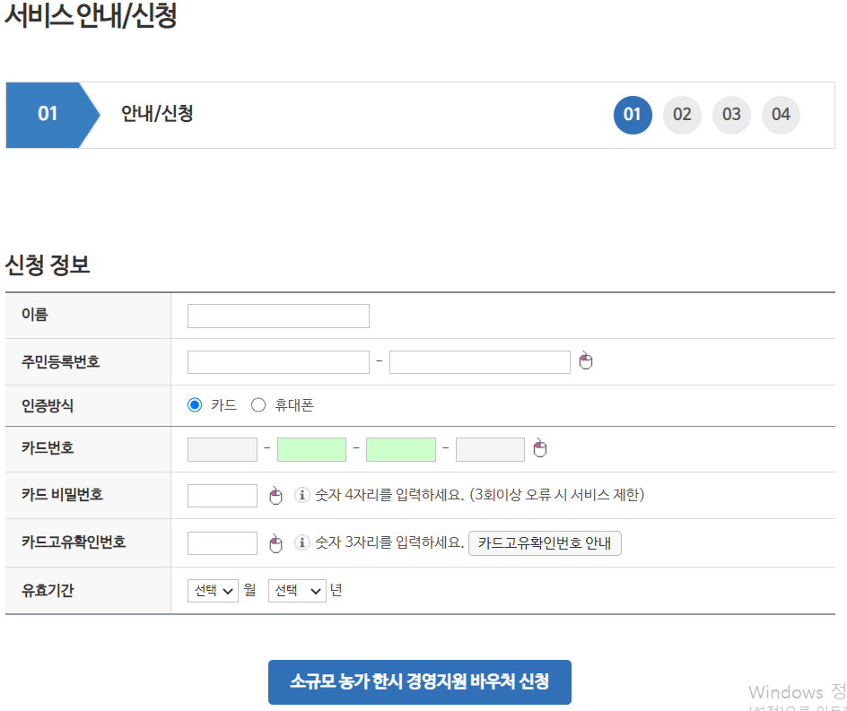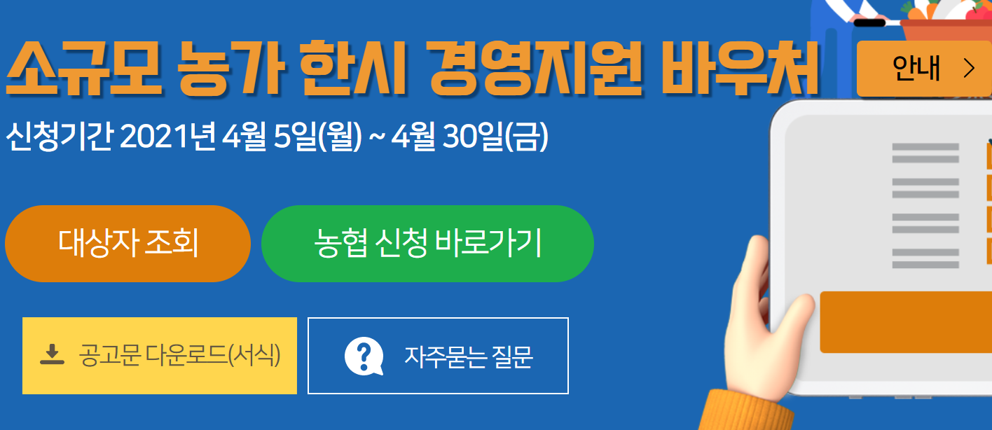 ▼소규모 농가 한시 경영 지원 바우처 신청방법