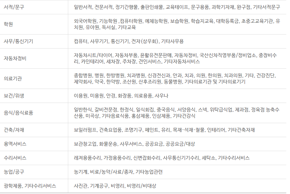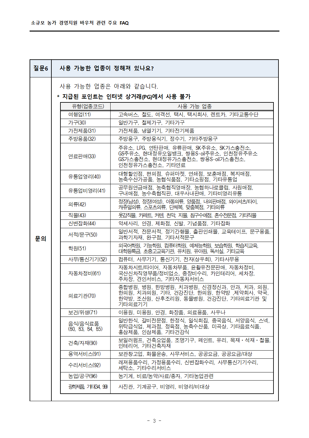 바우처는 농업·공구, 연료 판매 등 공고된 지침에 제시된 업종에서만 사용할 수 있습니다.