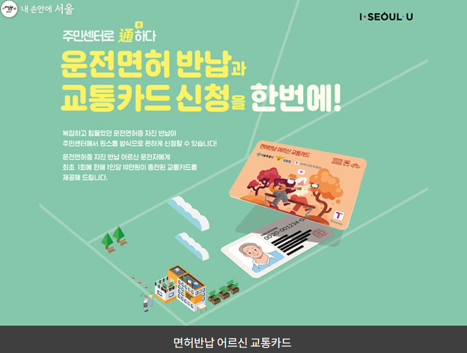 ⓒ서울시 운전면허증 소지 시에는 유효여부 검사 후 교통카드를 받을 수 있습니다.