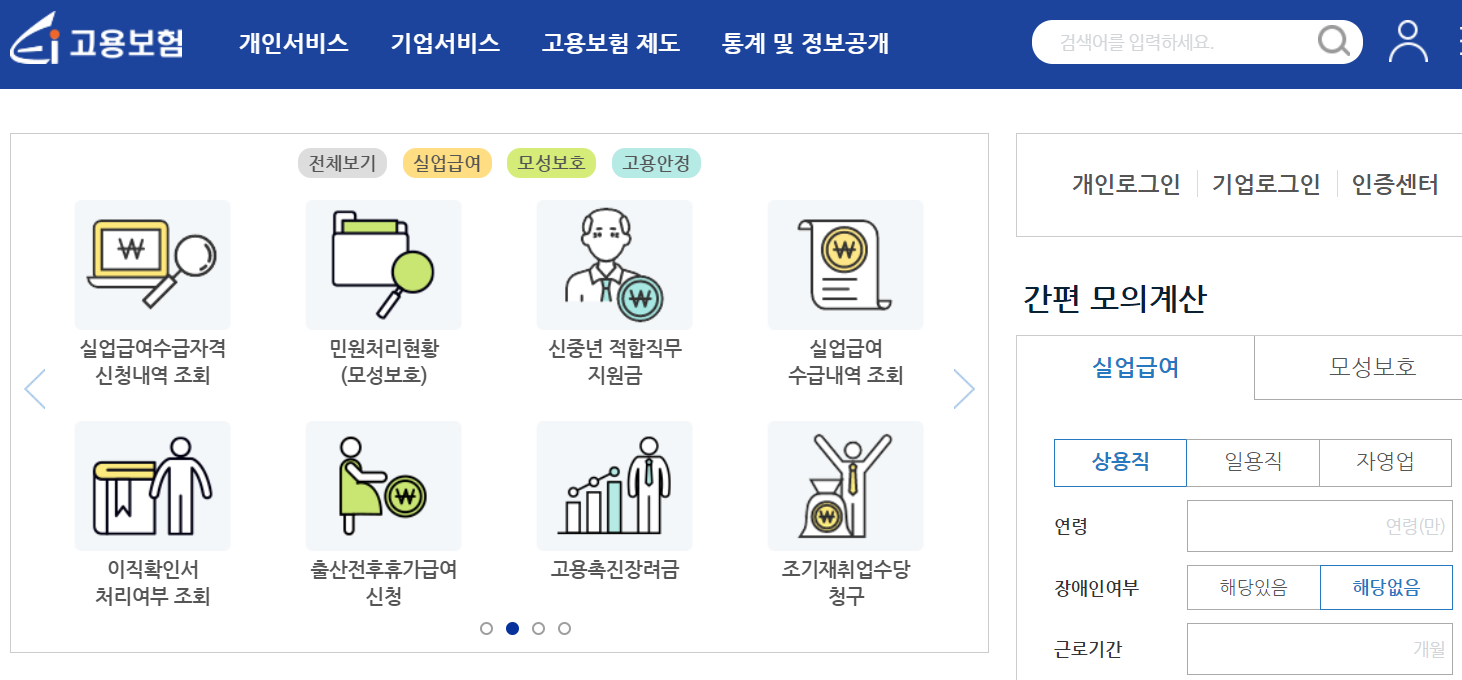 1. 온라인 신청 : 고용보험 홈페이지(바로가기)