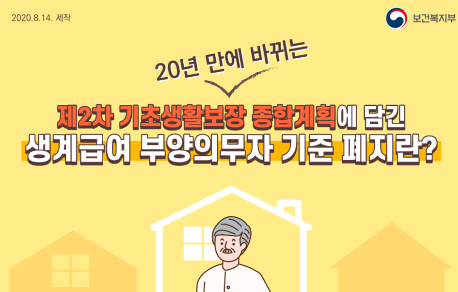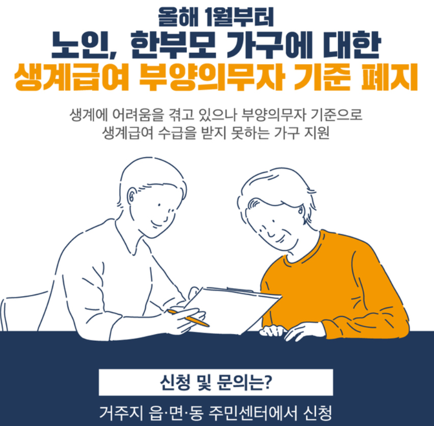 부양의무자 기준 폐지로 신청자 가구의 소득과 재산이 선정기준을 충족하는 경우, 부양의무자의 부양능력에 관계없이 생계급여를 받게 됩니다.