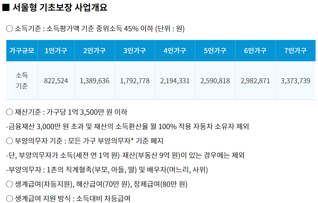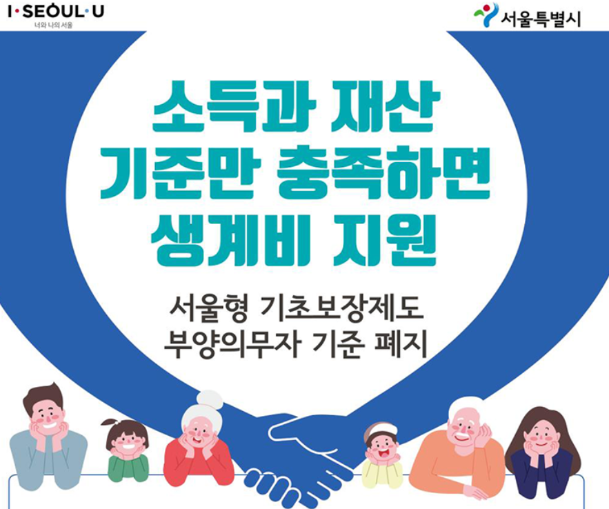 소득과 재산 기준만 충족하면 자녀나 손자녀 등 부양가족이 있어도 ‘서울형 기초보장’ 수급 혜택을 받을 수 있게됩니다.