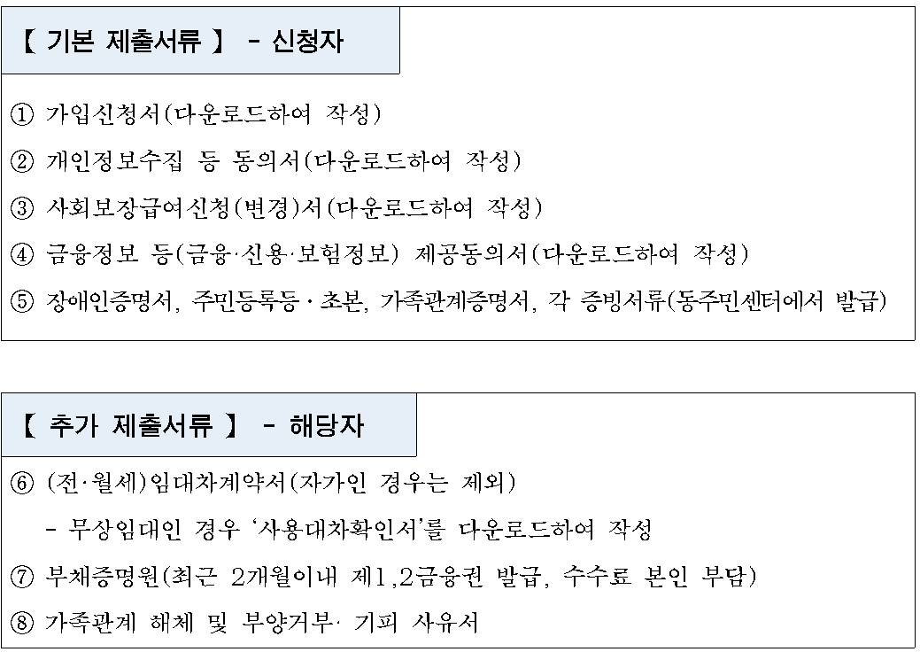 한 가지 서류라도 누락되면 신청이 되지 않으며 미리 준비를 잘해야 합니다.
