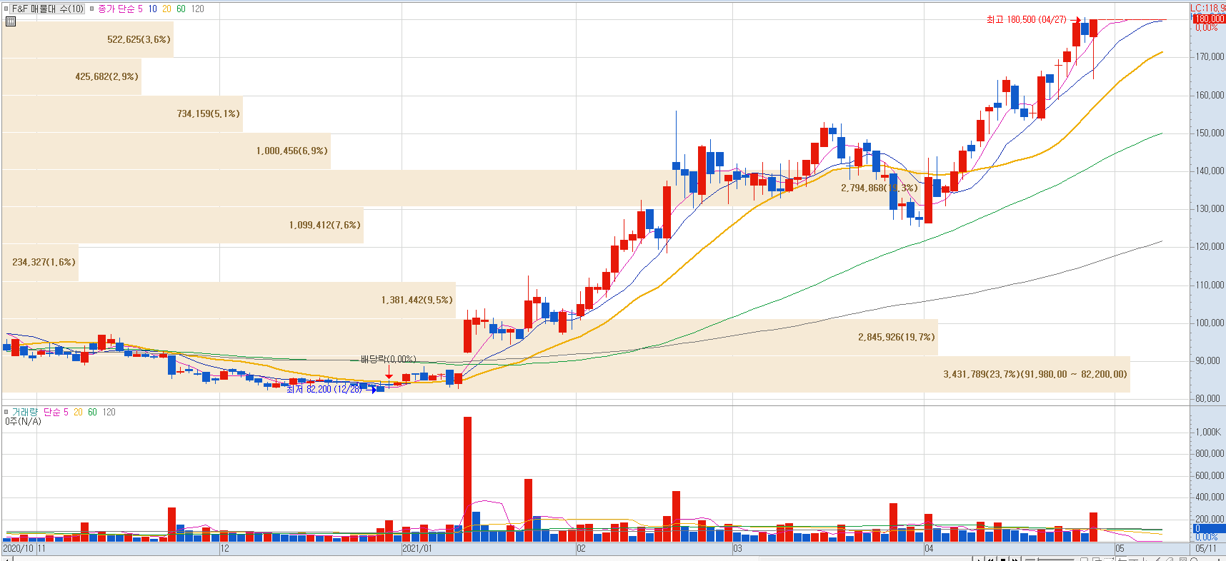 현재 홀딩스와 에프앤에프로 분할 예정에 따라 거래정지가 되어 있으며 분기 실적에 대한 주가 흐름은 신주 상장 예정 이후 반영될 전망입니다.