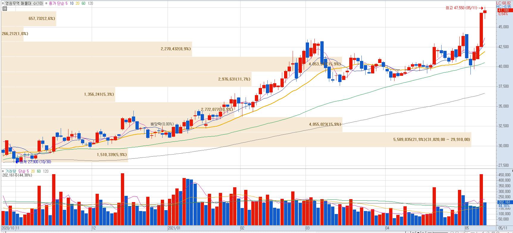 전 세계적으로 백신 접종 본격화 및 소비심리 개선으로 의류주 부각되며 거의 모든 업체의 1분기 실적이 어닝서프라이즈 발생하고 있습니다.