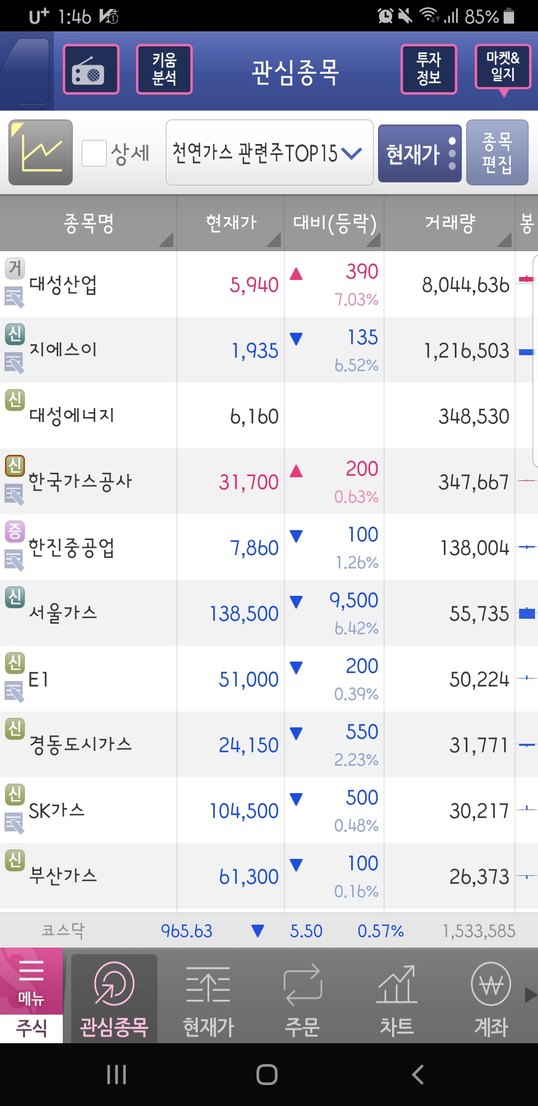 천연가스 관련주 ▼천연가스 관련주 TOP 15