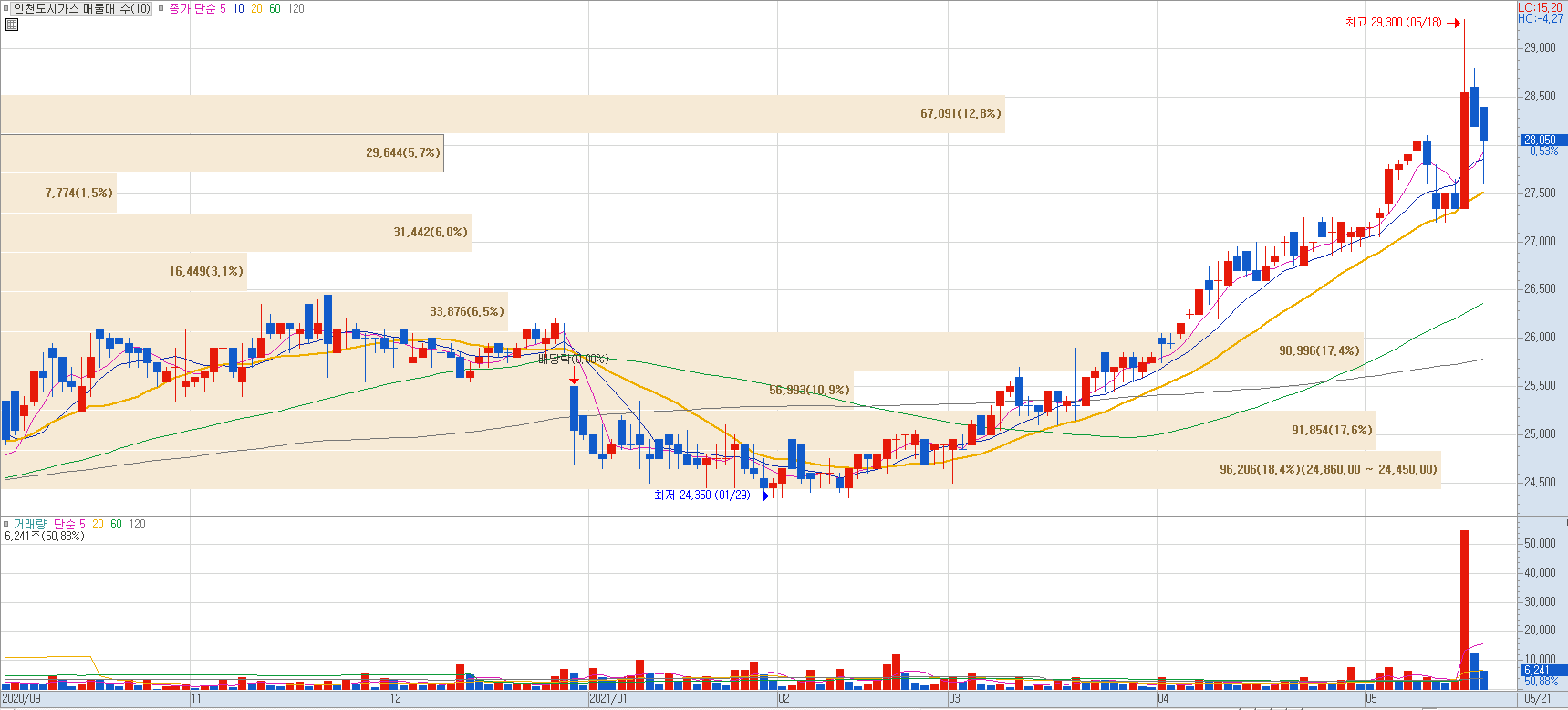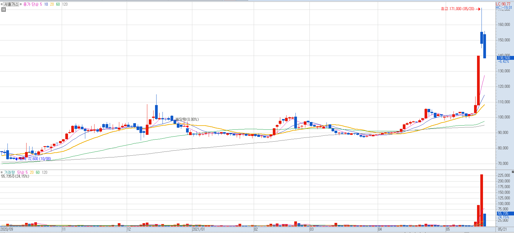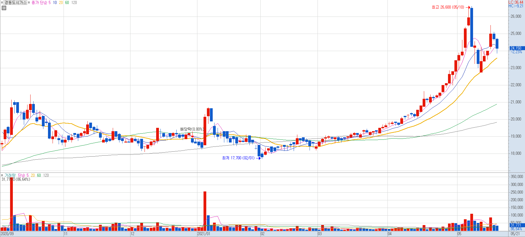 이처럼 천연가스 가격 강세로 인해 천연가스 도입 및 가스 공급 업체들이 주목받고 있습니다.